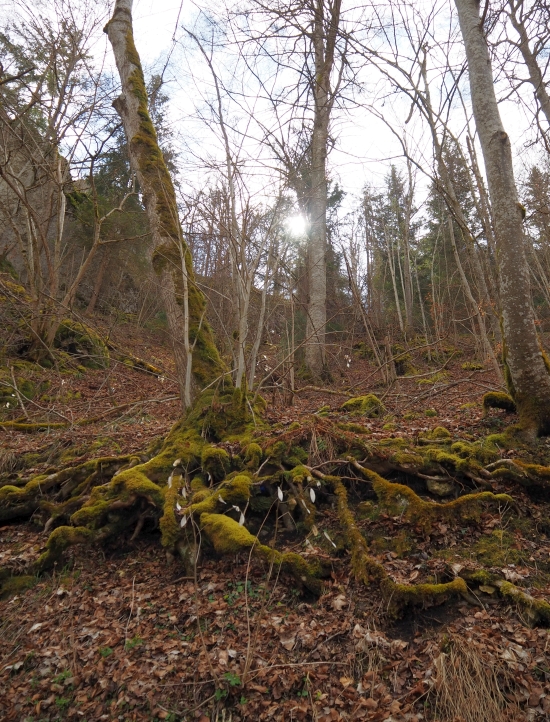 Georg war zum ersten Mal dort und auch ganz begeistert. Neben den vielen Märzenbechern hat es ja dort auch diese vielen dunklen Felsschluchten, alte Bäume und felsige Steilhänge. Das ist für so einen Jungen schon abenteuerlich. Aber ich denke, die Fotos sprechen auch für sich.